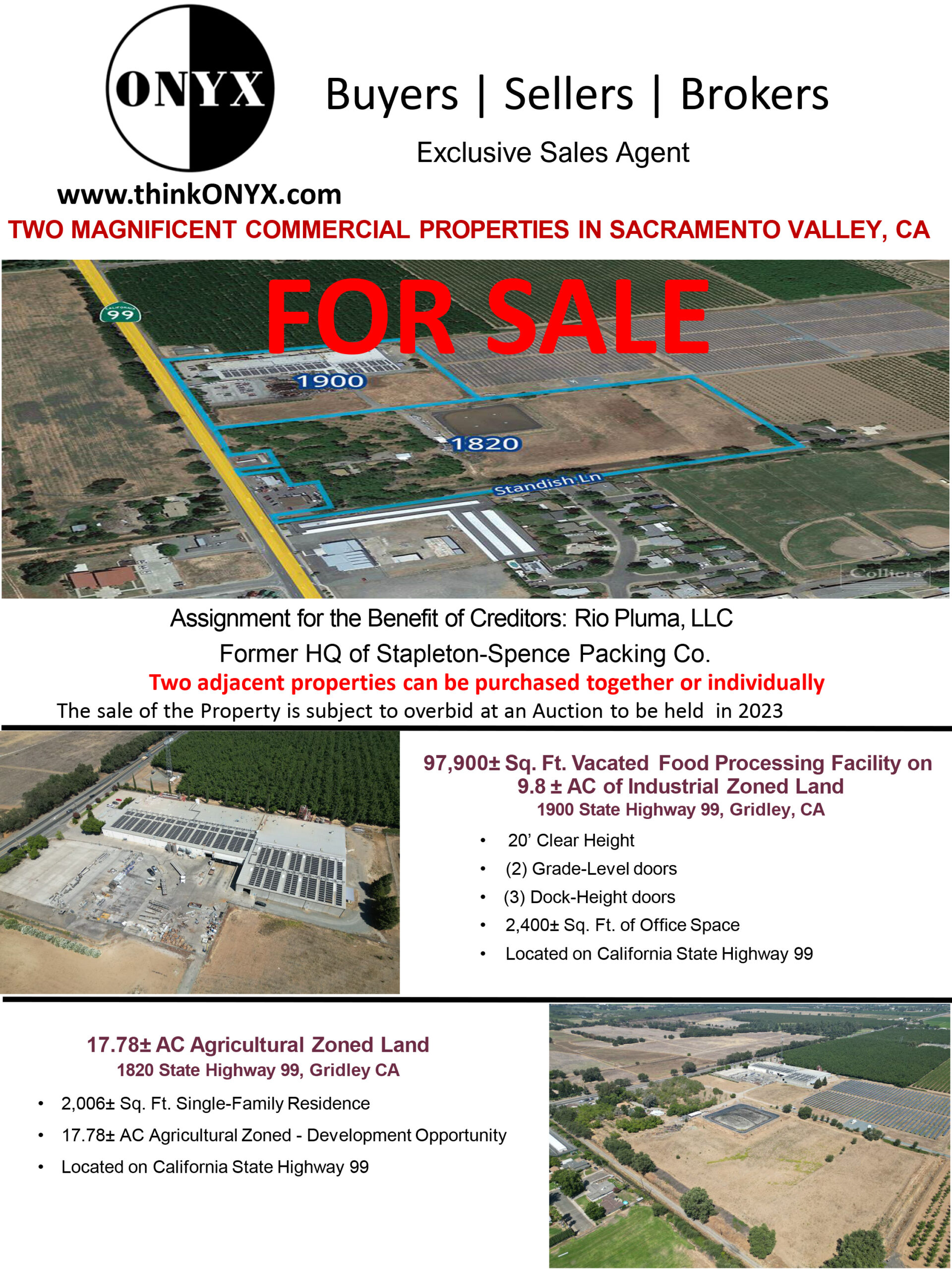 For Sale By Assignment for the Benefit of Creditors – Dual Asset Offering – 97,900 +/- SF Industrial Building and 27+/- Industrial and Agricultural Zoned Acres